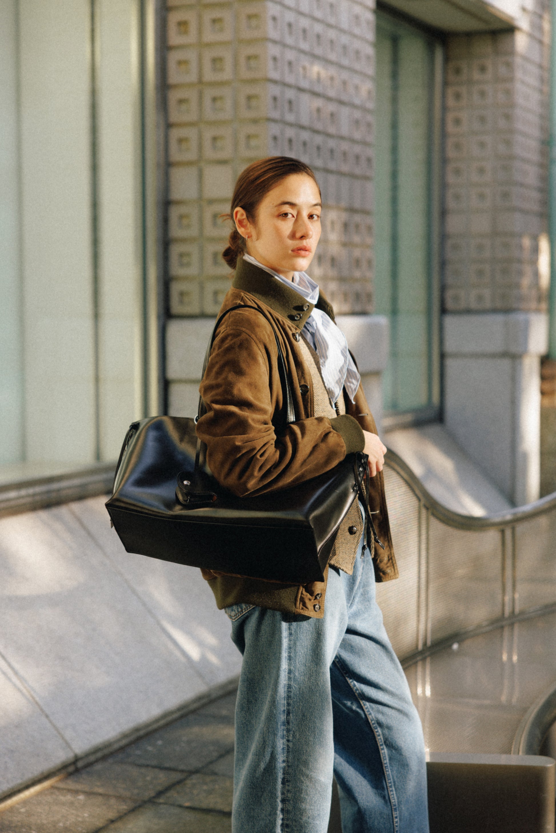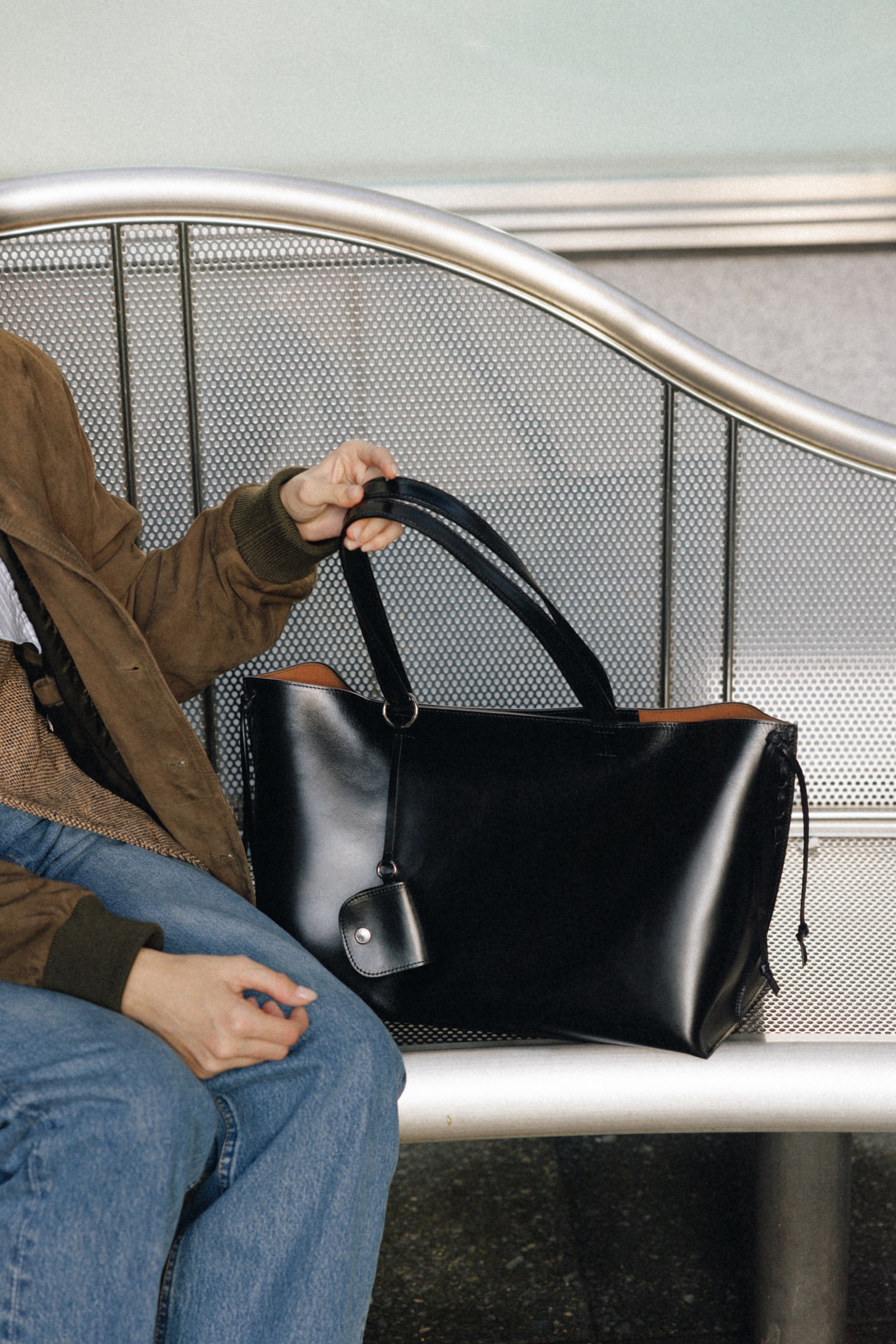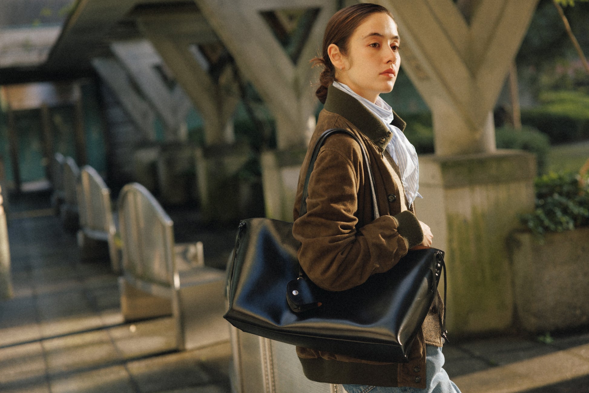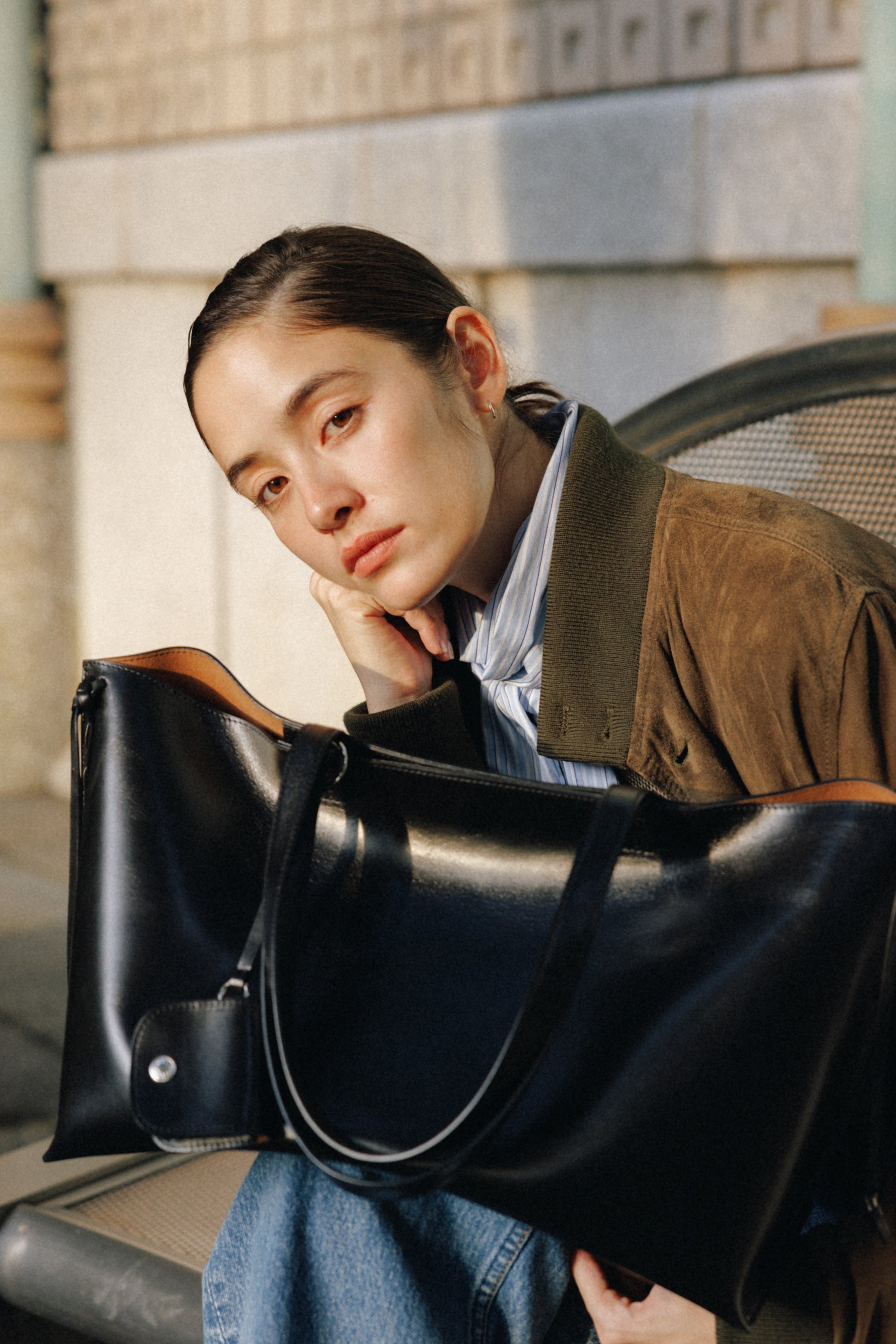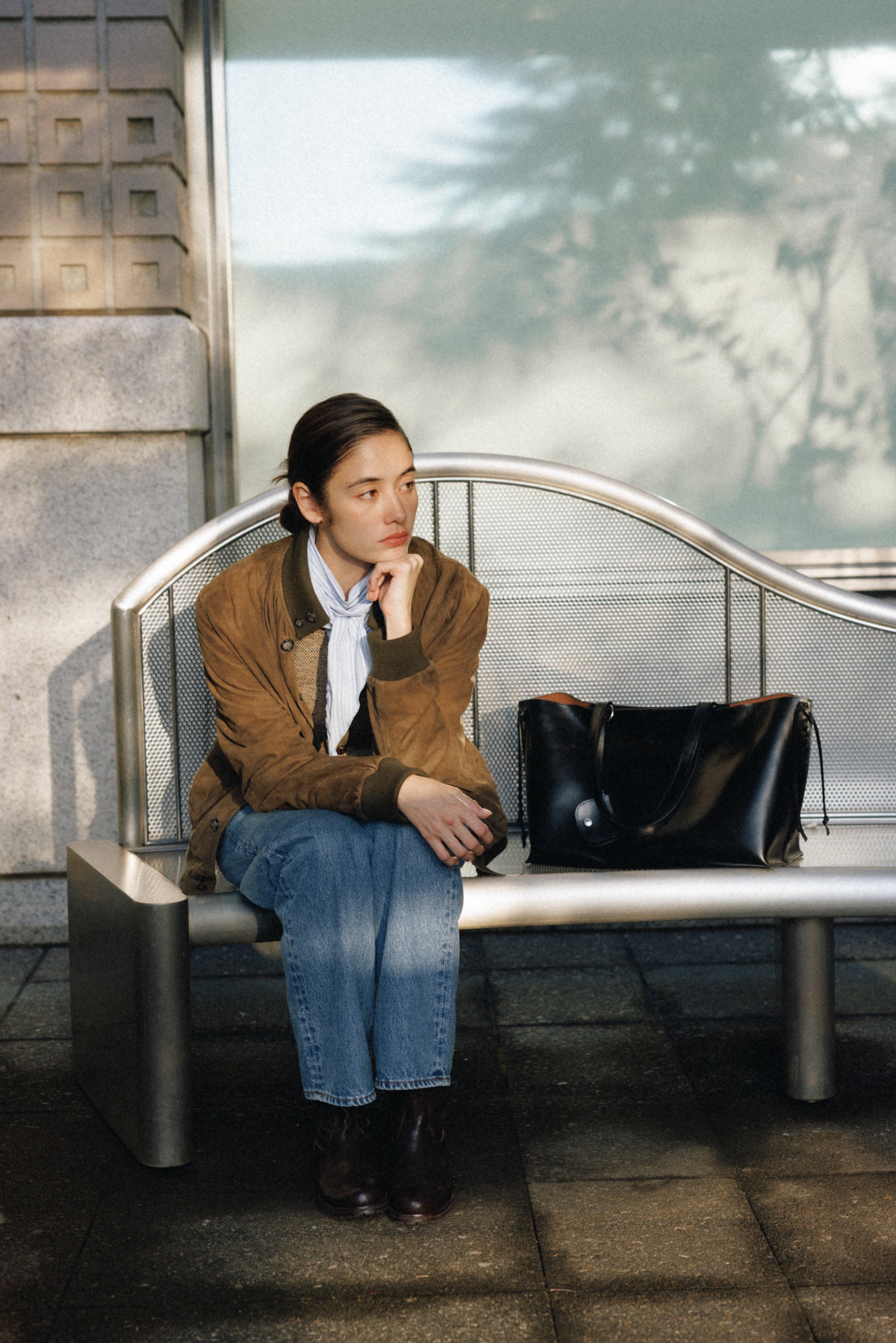 トレセバッグは、ほのかな光沢をもつカウレザーの質感が引き立つショッパーバッグです。両サイドにはレザーコードを配し、ステッチのディテールと繊細な結び目を作って長く垂らすことで、特徴的なシルエットを生み出しています。 付属の小さなレザーポーチはAirPodsなどの小物を収納でき、ストラップに自然に掛けてアクセントとしてお使いいただけます。ライニングにはブラウンの生地を使用し、着用時に柔らかなコントラストがさりげないポイントとなります。内部にはレザーポケットを備え、実用性を高めています。