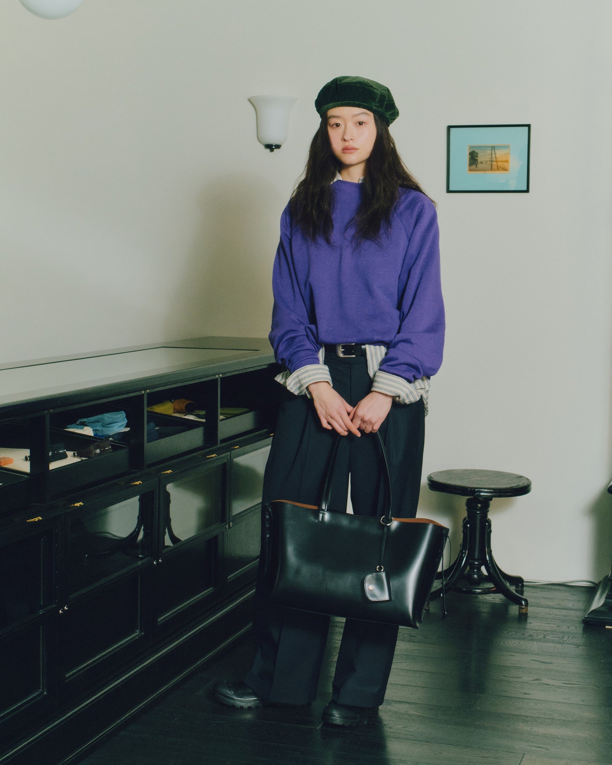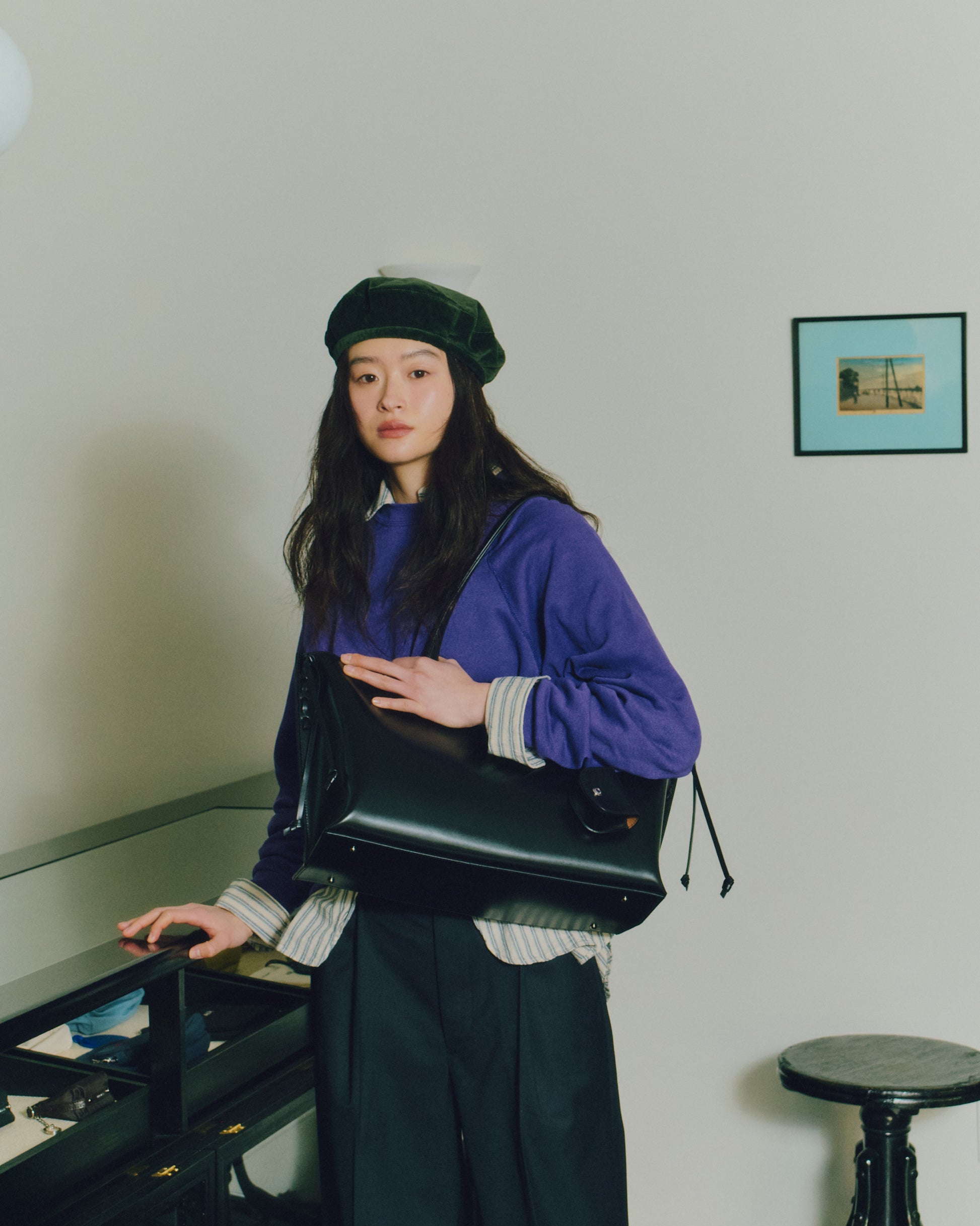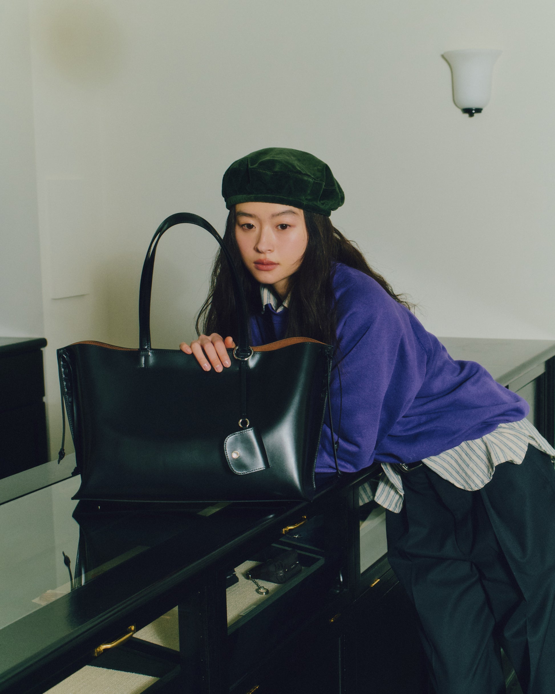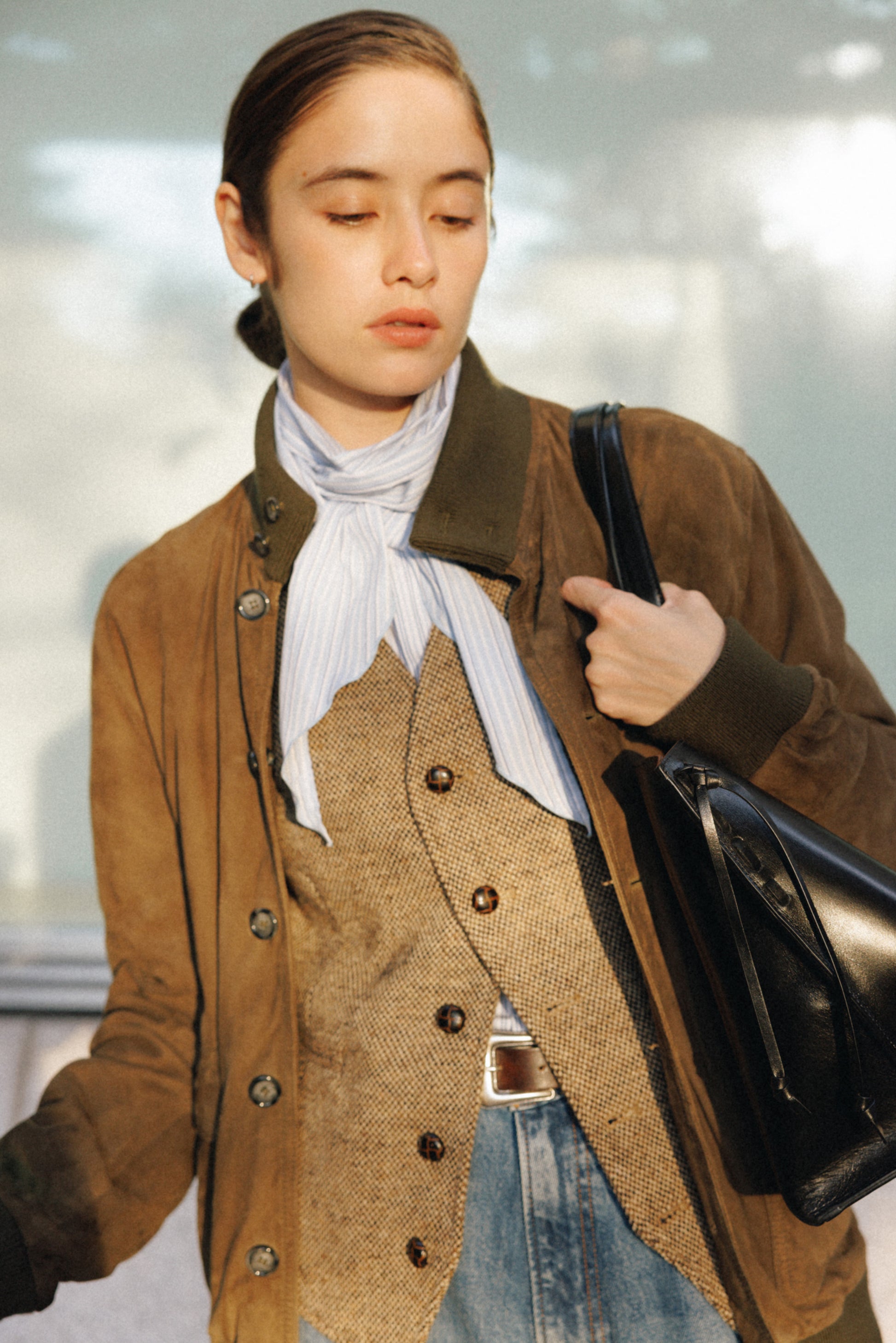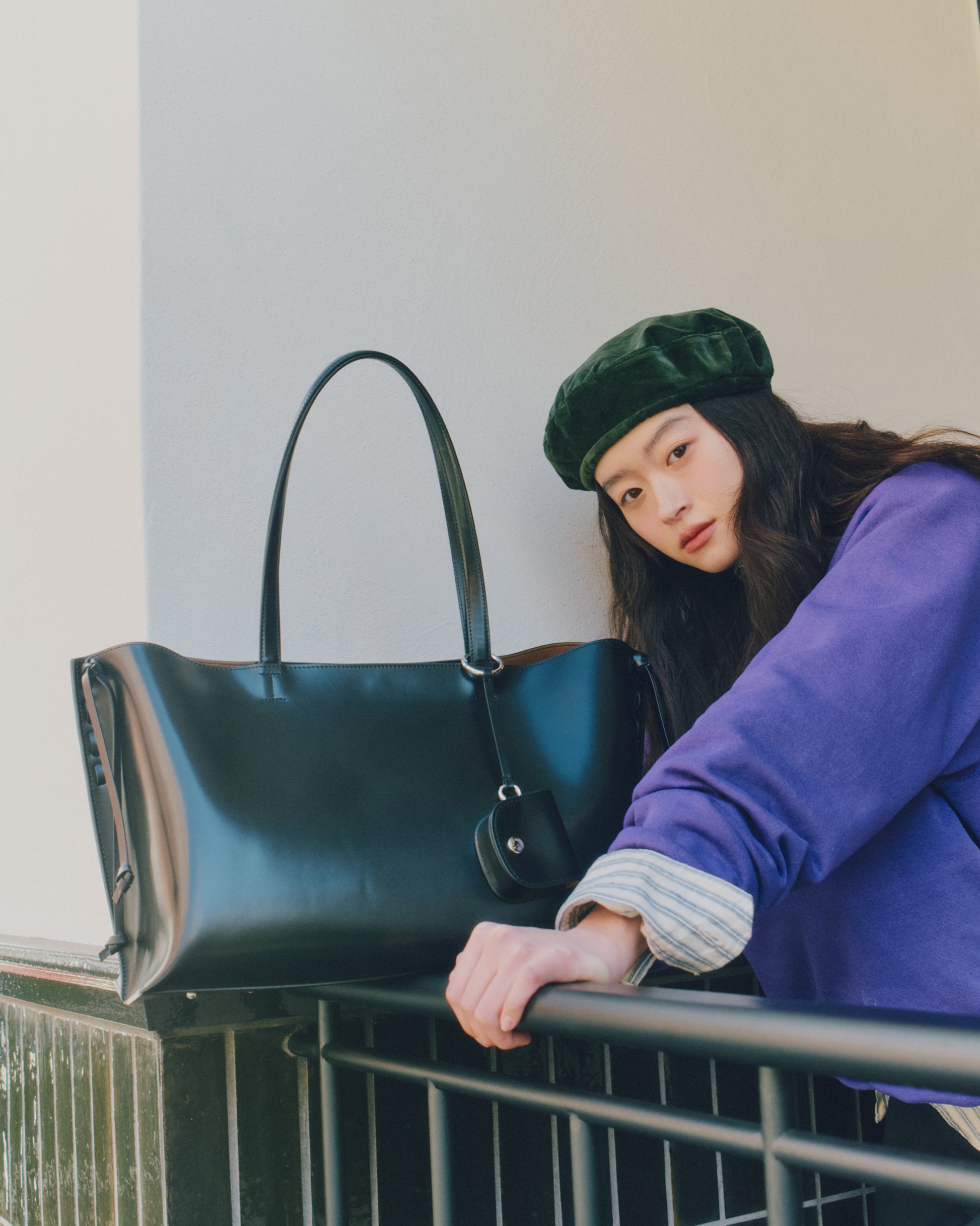 トレセバッグは、ほのかな光沢をもつカウレザーの質感が引き立つショッパーバッグです。両サイドにはレザーコードを配し、ステッチのディテールと繊細な結び目を作って長く垂らすことで、特徴的なシルエットを生み出しています。 付属の小さなレザーポーチはAirPodsなどの小物を収納でき、ストラップに自然に掛けてアクセントとしてお使いいただけます。ライニングにはブラウンの生地を使用し、着用時に柔らかなコントラストがさりげないポイントとなります。内部にはレザーポケットを備え、実用性を高めています。