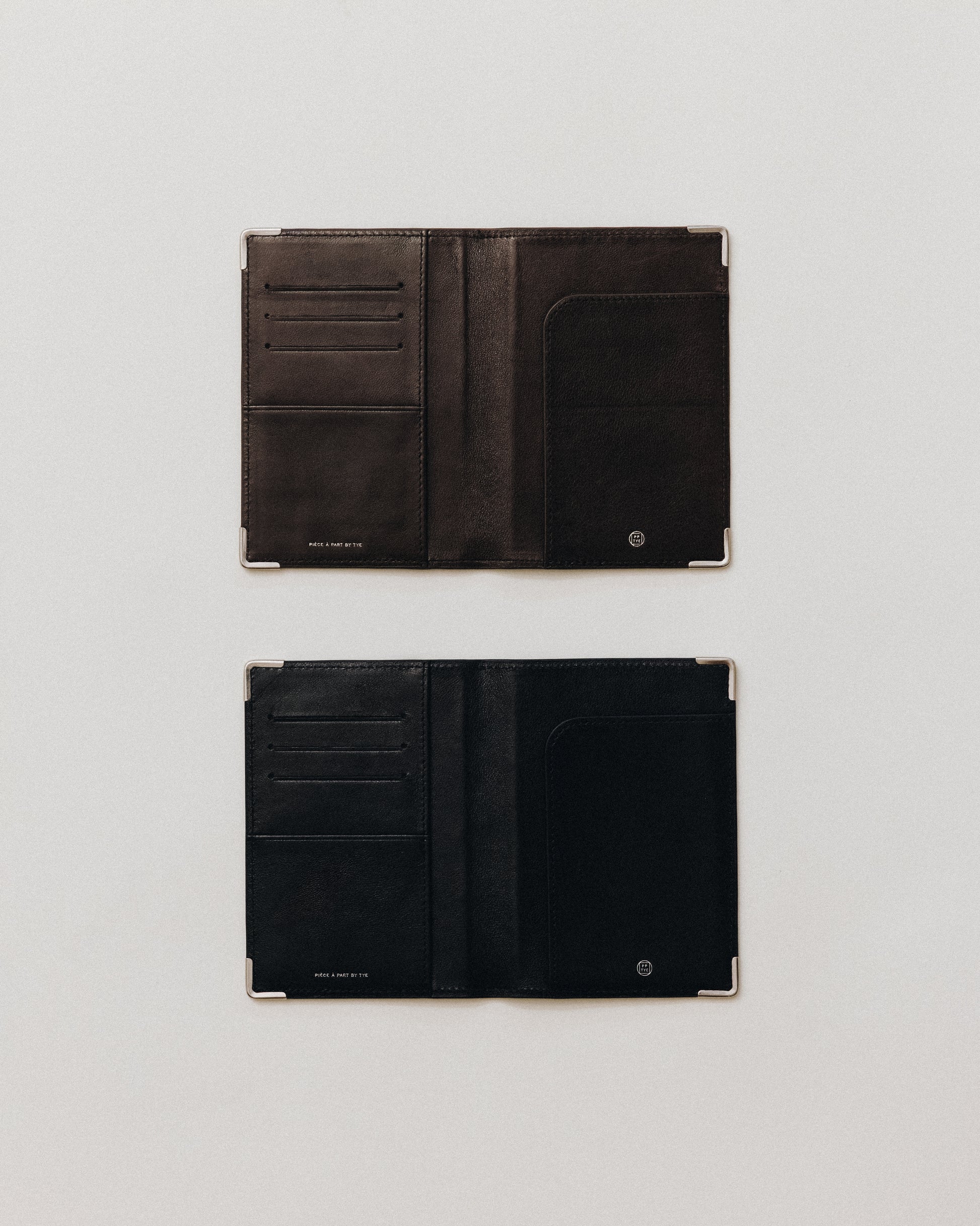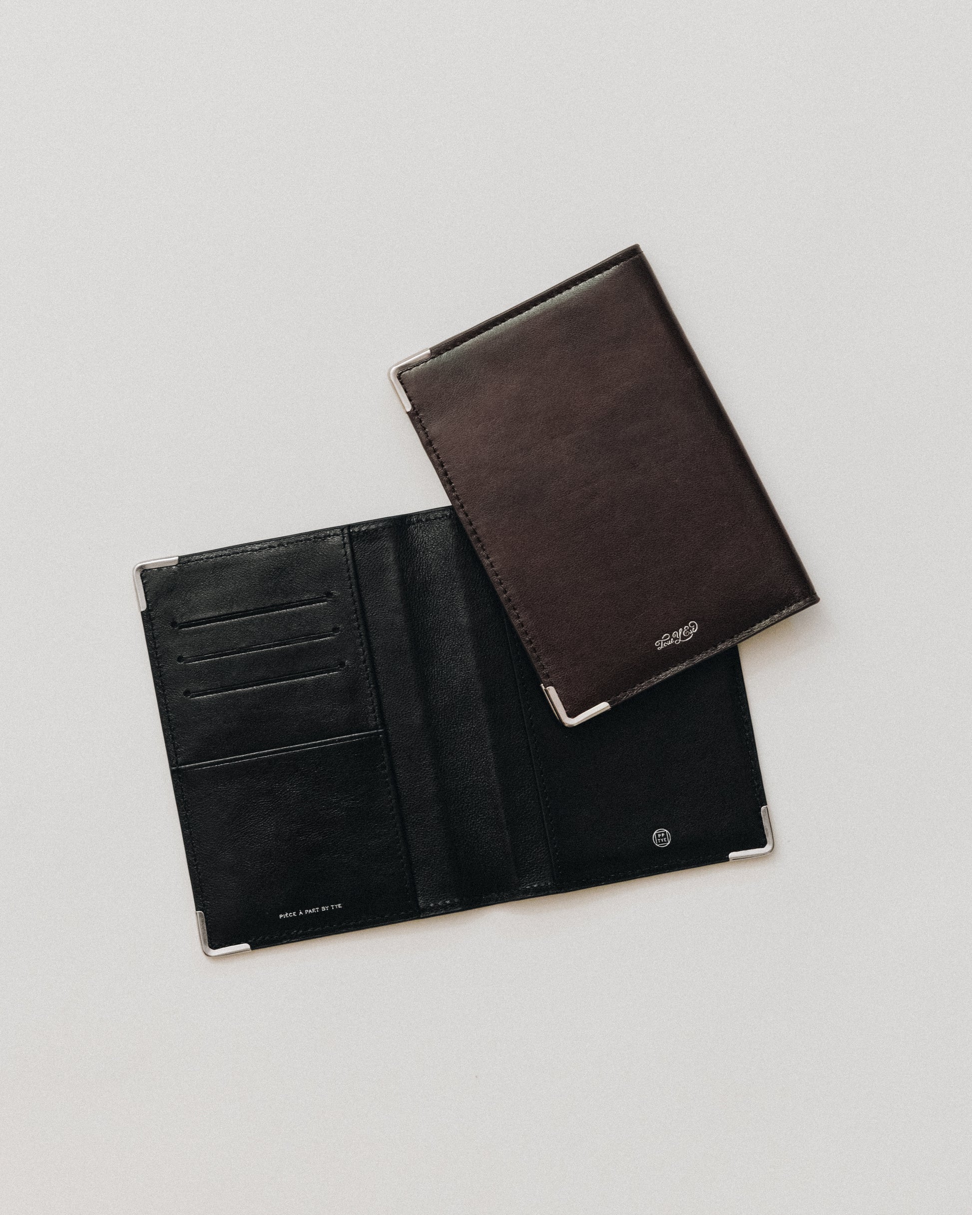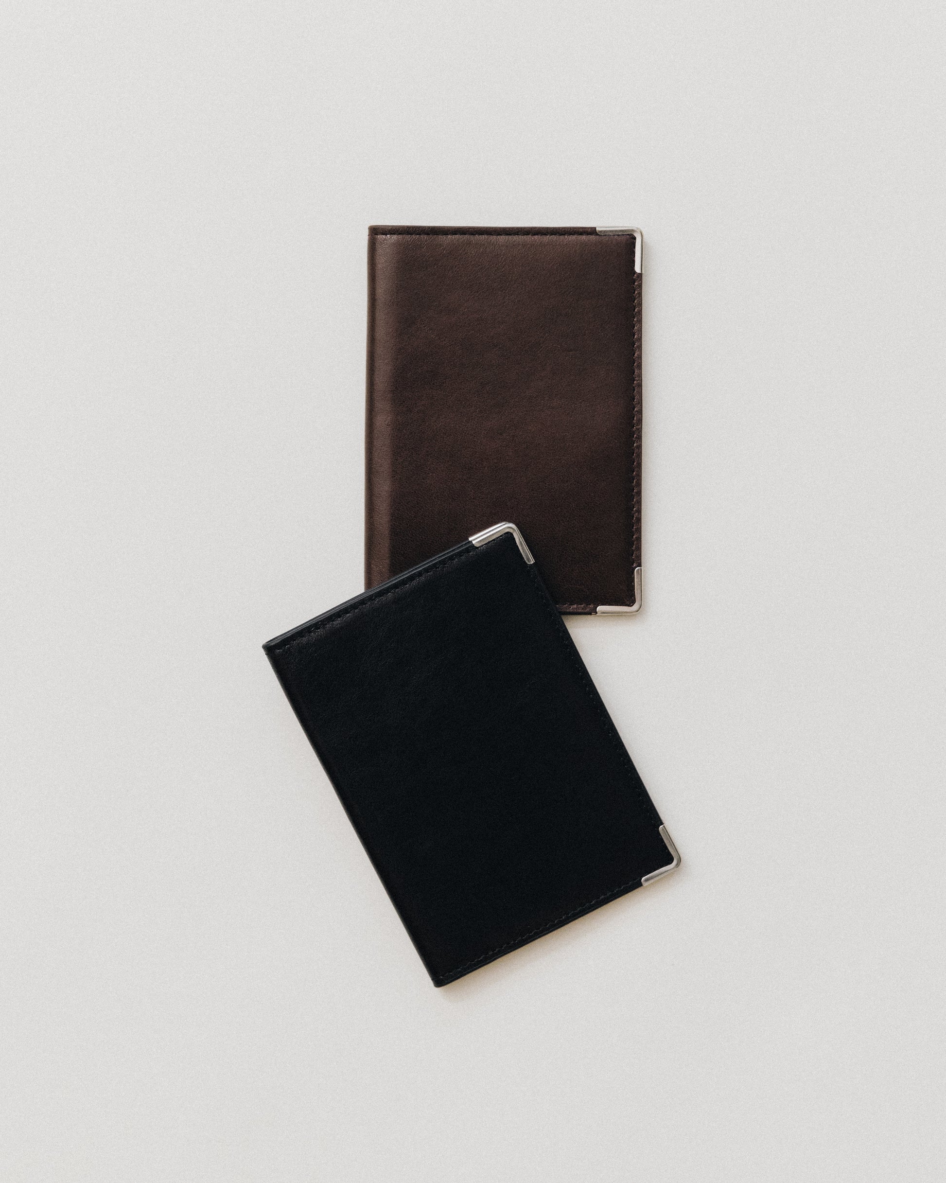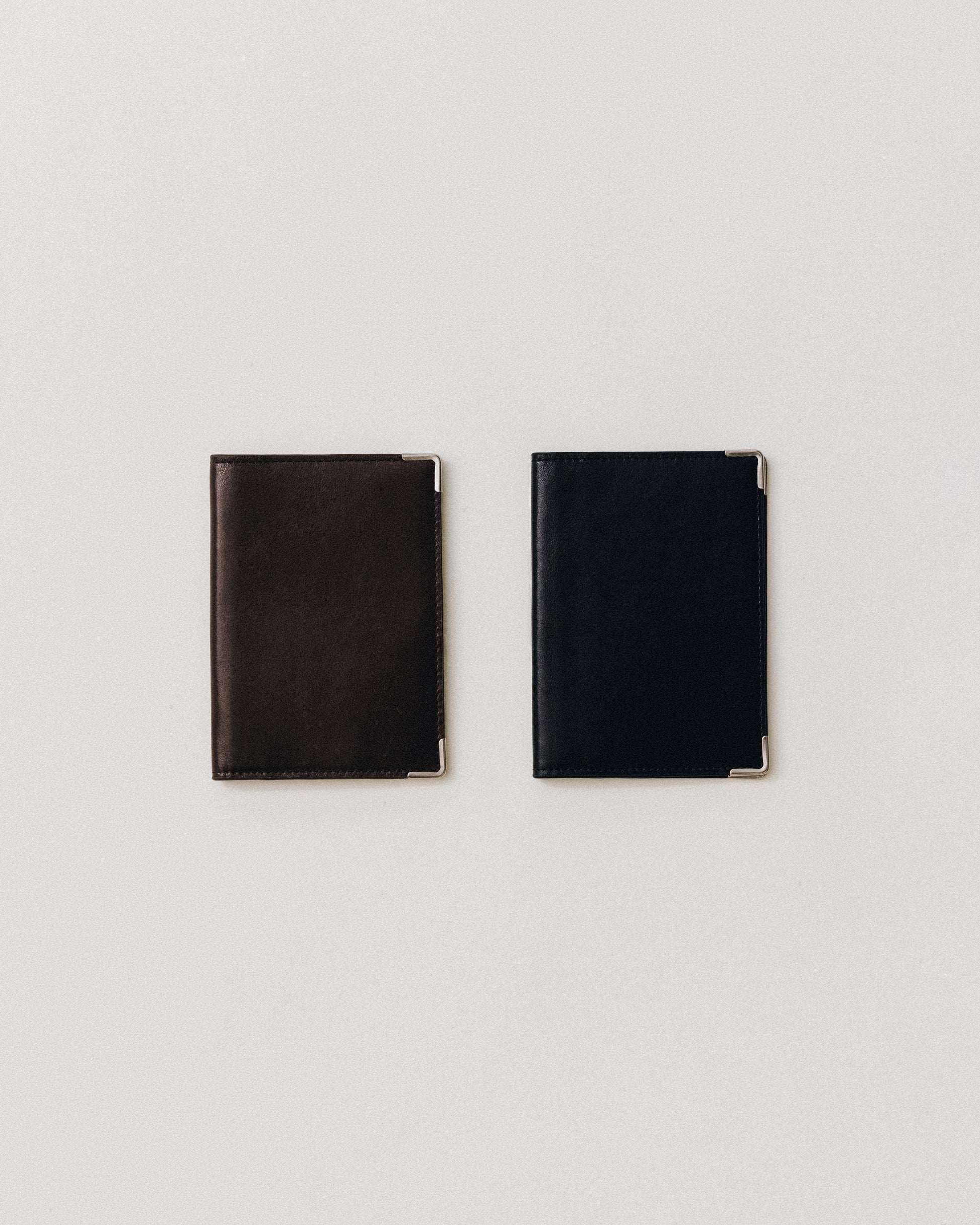 スリムなシルエットにメタルコーナー装飾を施したパスポートカバーです。 柔らかなラムレザーがパスポートをしっかりと包み込み、コーナーのハードウェアは摩耗を防ぎながらさりげないアクセントとなります。 左側にはカードスロット3つと補助ポケット1つ、右側にはパスポート用スロットがあり、旅行中によく使うパスポートやカード、紙幣などを整理して保管しやすくなっています。 表面はコーナー装飾で整った印象に仕上げ、内部と背面には箔押しロゴをあしらいました。 穏やかな光沢を持つラムレザーは自然なシワと柔らかな手触りを備え、使い込むほどに深みのあるエイジングを楽しめ、独自の質感が増していきます。