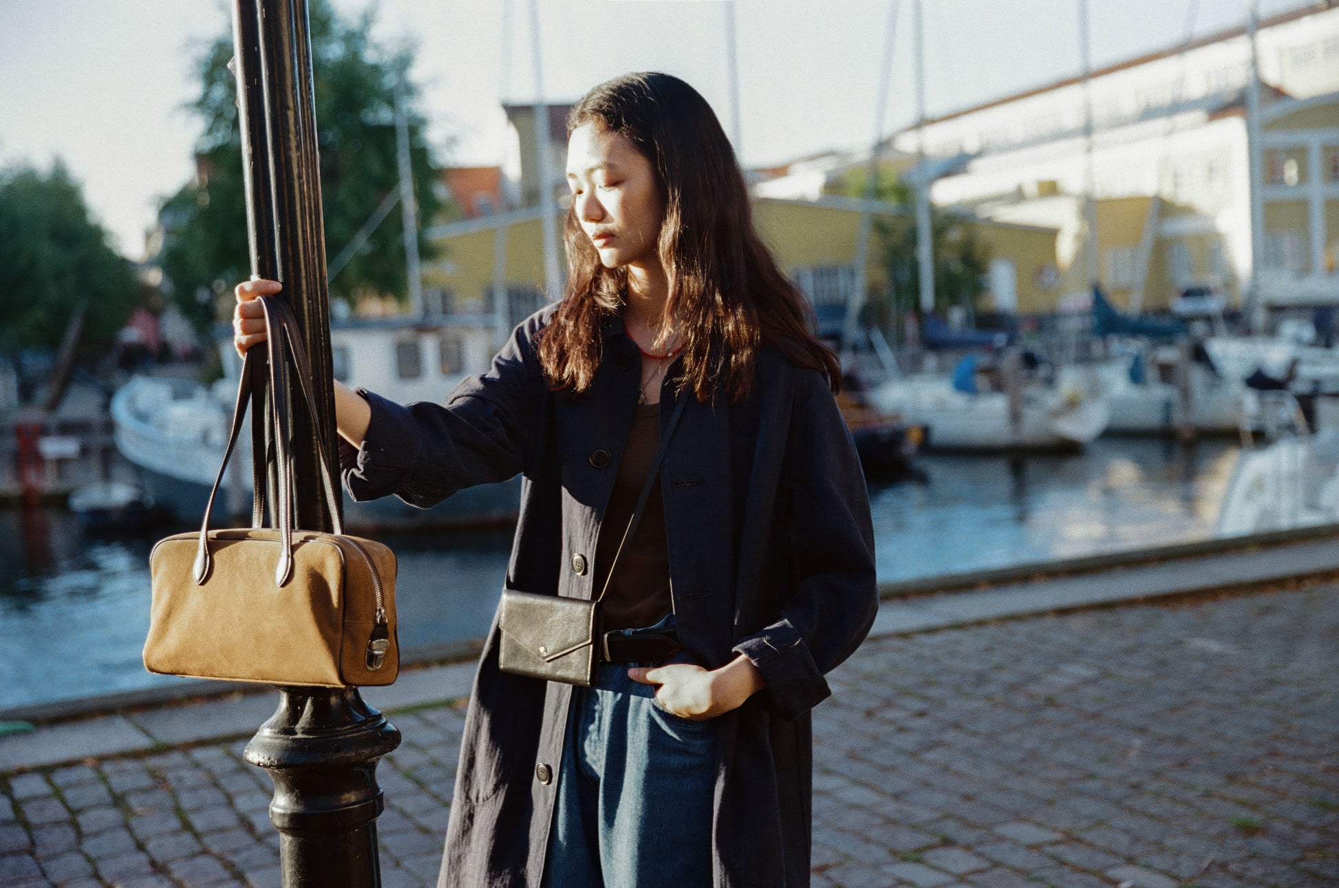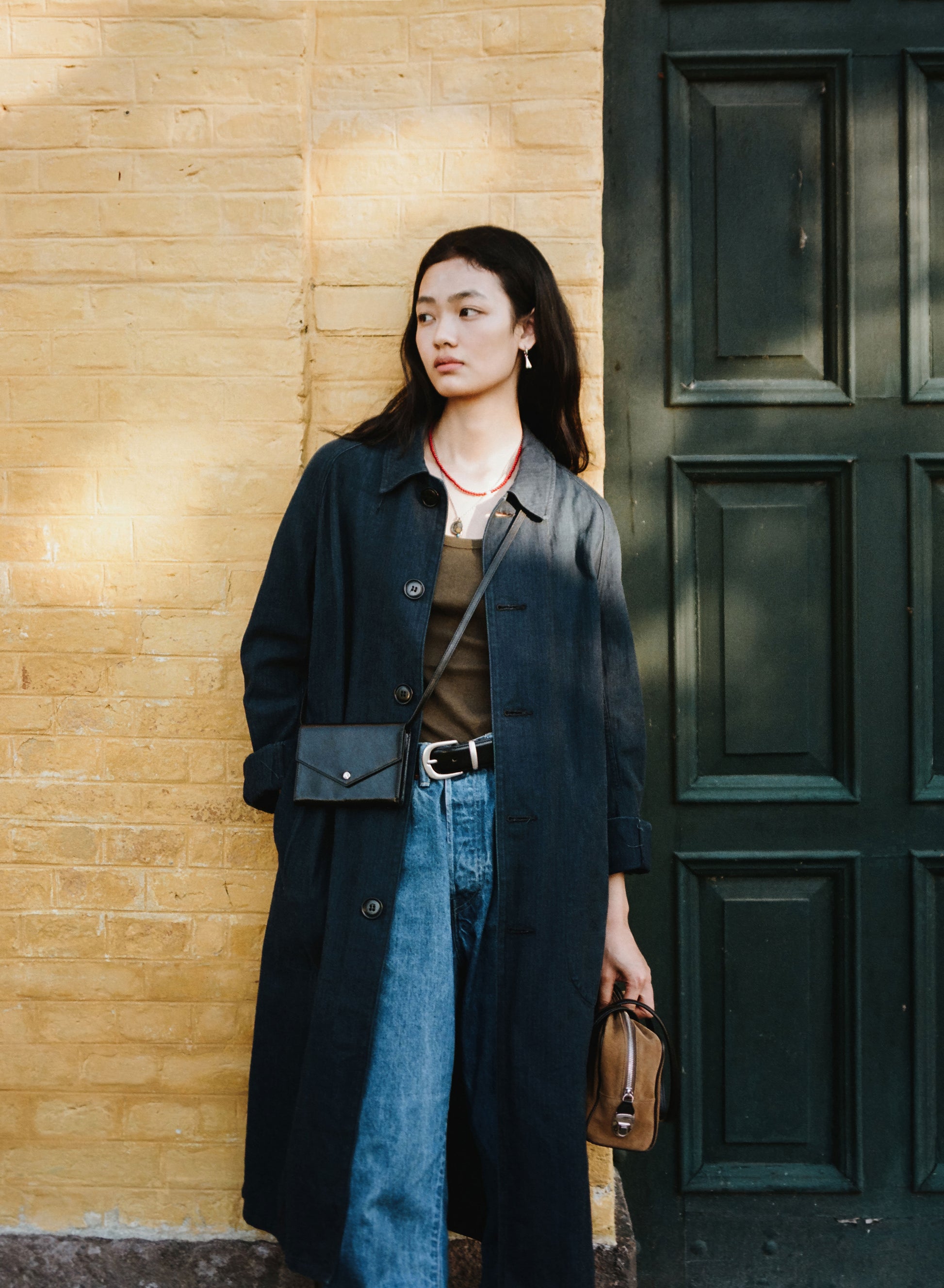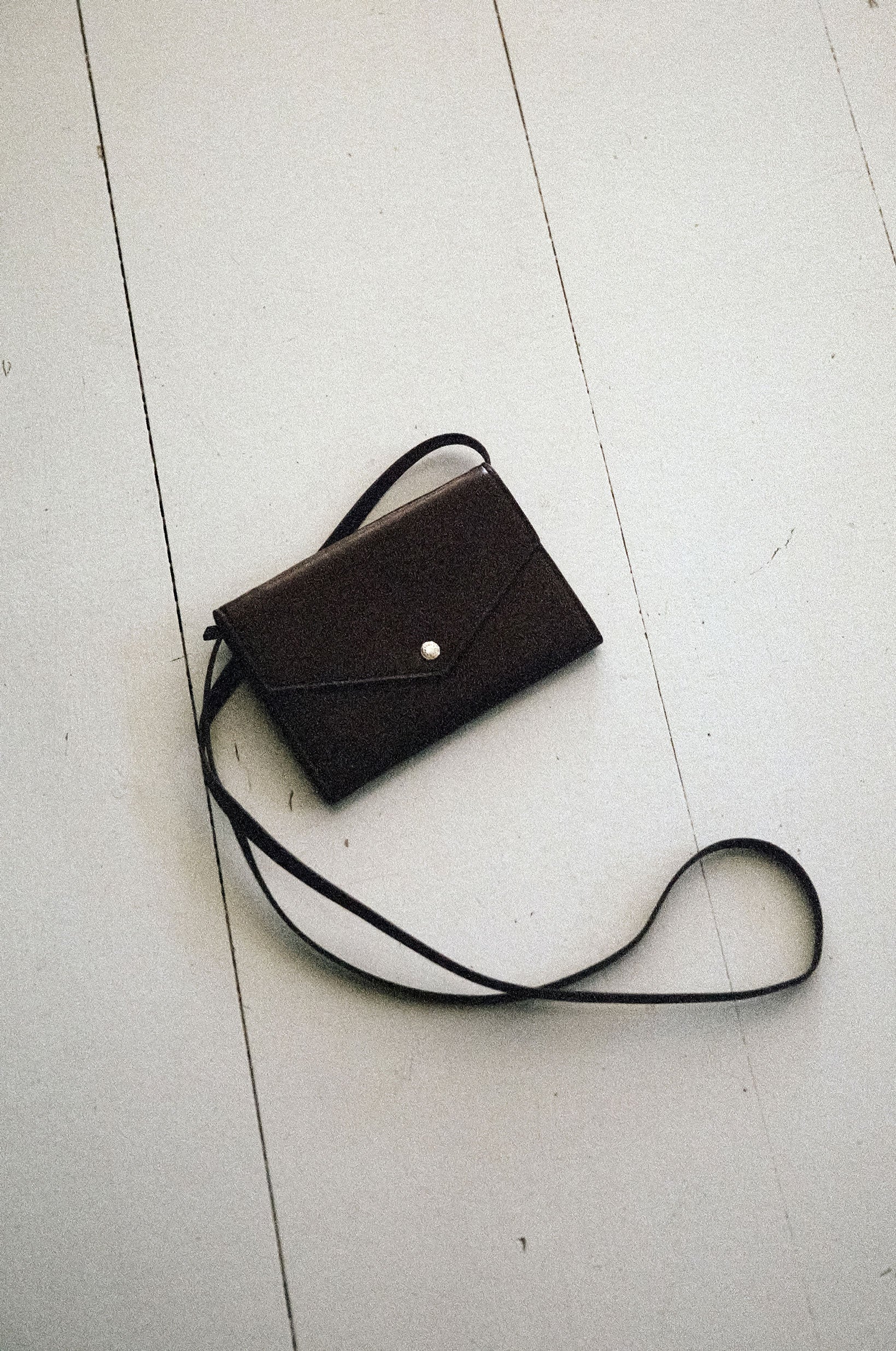 旅行の利便性を高めるクロスウォレットです。 旅行中によく使うパスポートやクレジットカード、紙幣などをひとまとめに整理でき、フロントフラップ構造で開閉も簡単です。 内部にはジッパーポケットと仕切り付きの収納スペースがあり、必要なものをきれいに分けて収納できます。 軽くクロスボディで持てば、パスポートやカードをすぐに取り出せ、使用頻度が低いときはストラップを外してバッグの中で財布のように保管できます。 穏やかな光沢を持つラムレザーは自然なシワと柔らかな手触りを備え、使い込むほどに深みを増し、独自の質感を楽しめます。