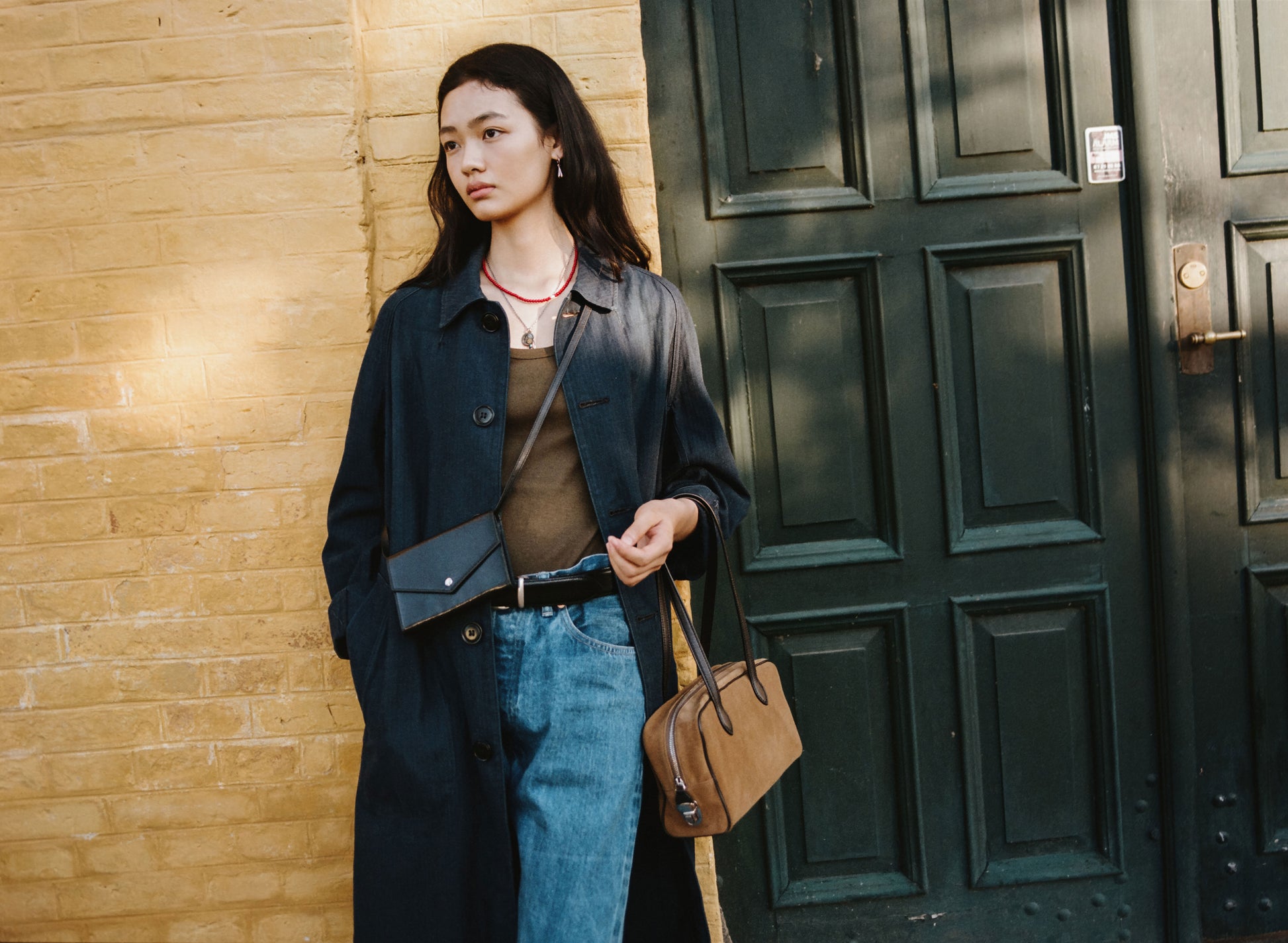 穏やかな光沢を持つラムレザーは自然なシワと柔らかな手触りを備え、使い込むほどに深みを増し、独自の質感を楽しめます。