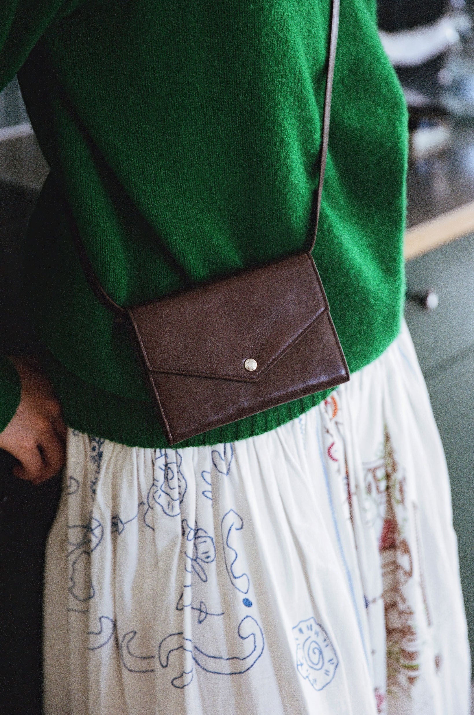 旅行の利便性を高めるクロスウォレットです。 旅行中によく使うパスポートやクレジットカード、紙幣などをひとまとめに整理でき、フロントフラップ構造で開閉も簡単です。 内部にはジッパーポケットと仕切り付きの収納スペースがあり、必要なものをきれいに分けて収納できます。 軽くクロスボディで持てば、パスポートやカードをすぐに取り出せ、使用頻度が低いときはストラップを外してバッグの中で財布のように保管できます。 穏やかな光沢を持つラムレザーは自然なシワと柔らかな手触りを備え、使い込むほどに深みを増し、独自の質感を楽しめます。